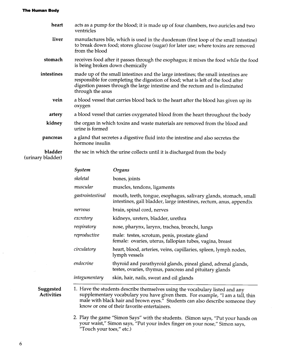 The target vocabulary is listed and simple practice activities help students put their new words into practice.