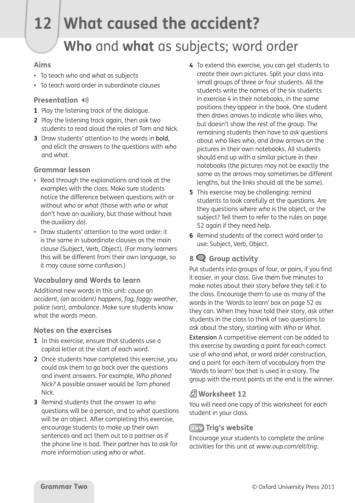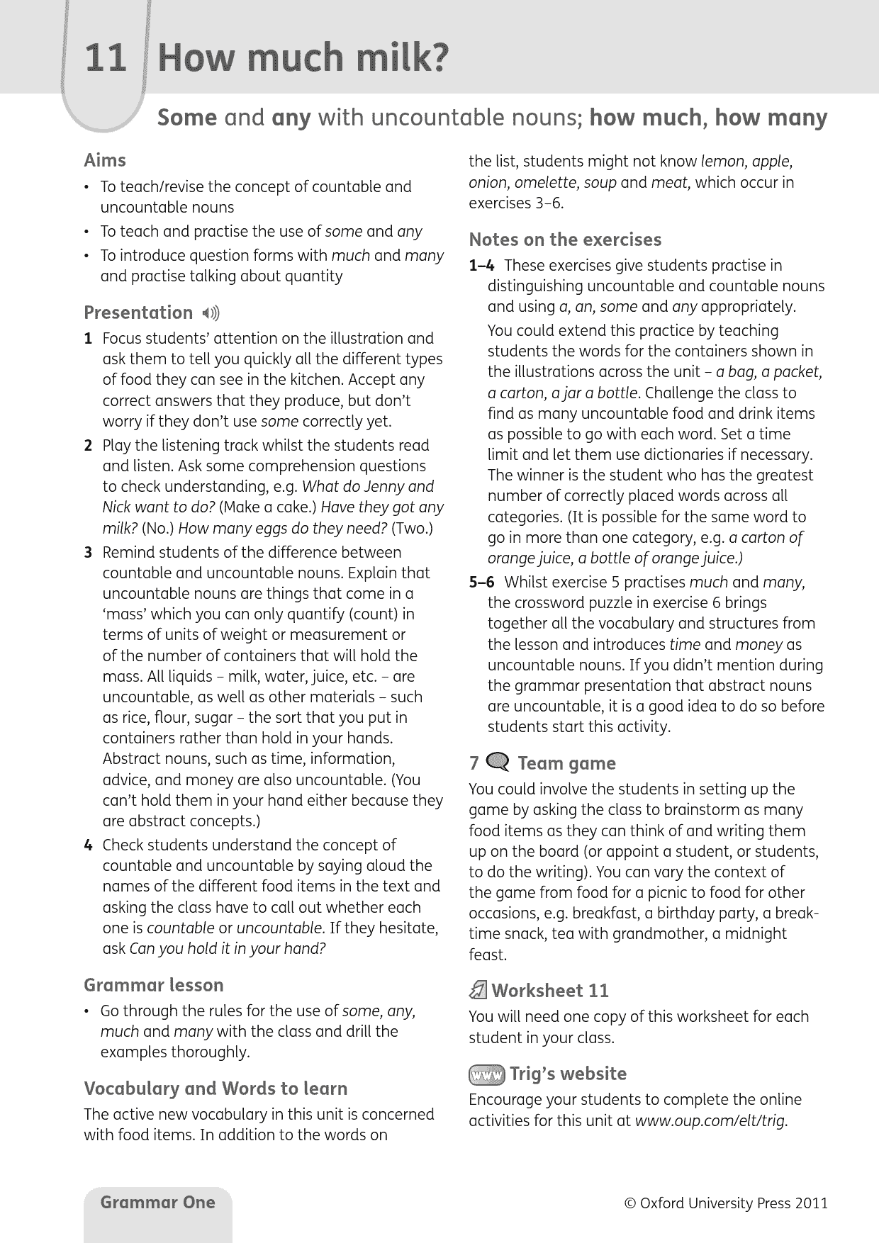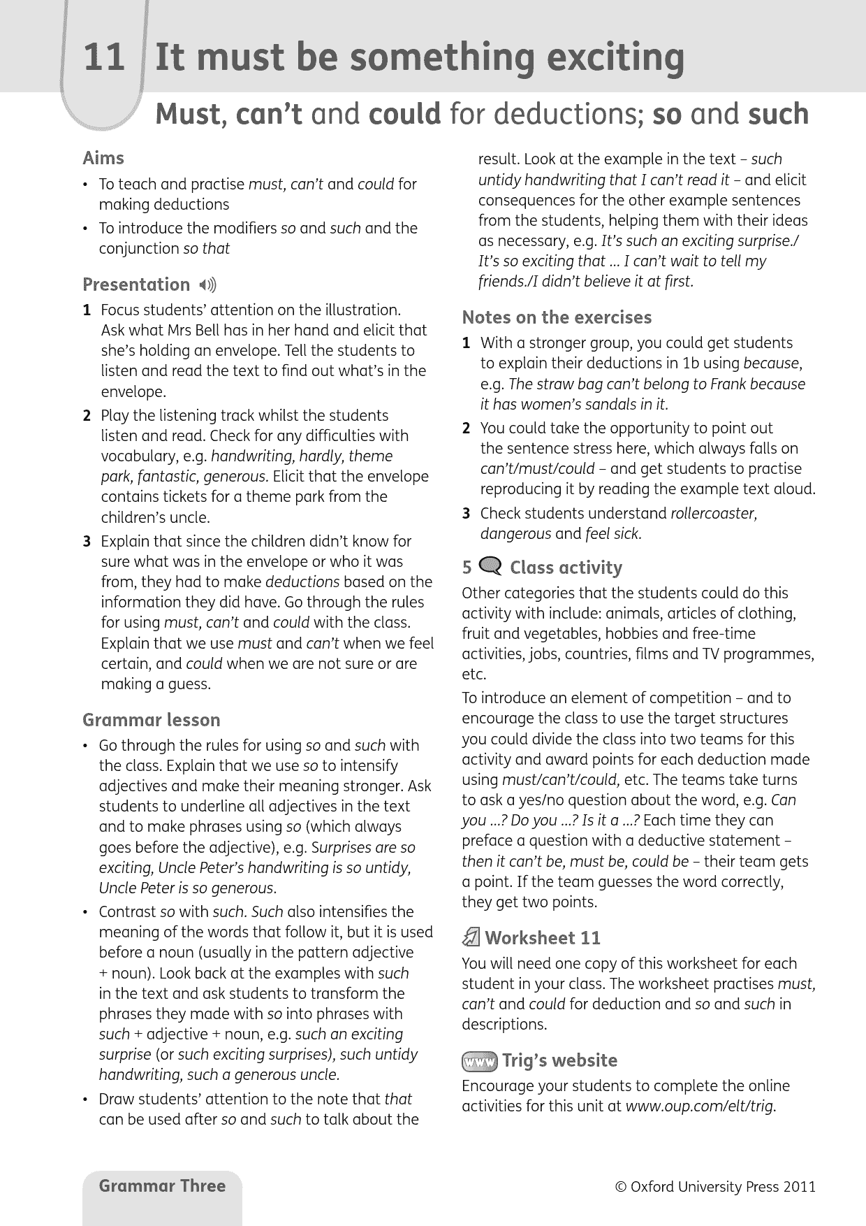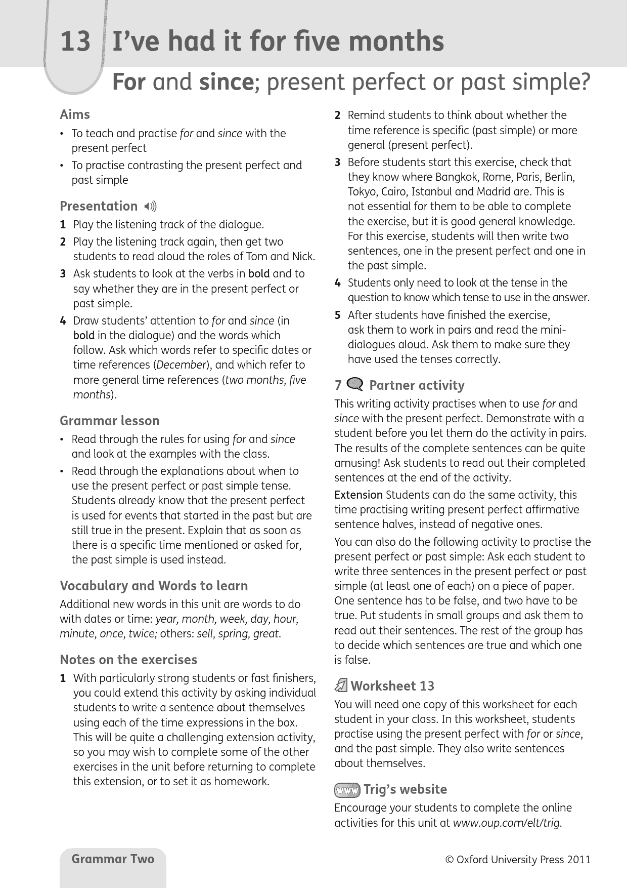 – Extra online materials for students and teachers give extra practice and lesson support.