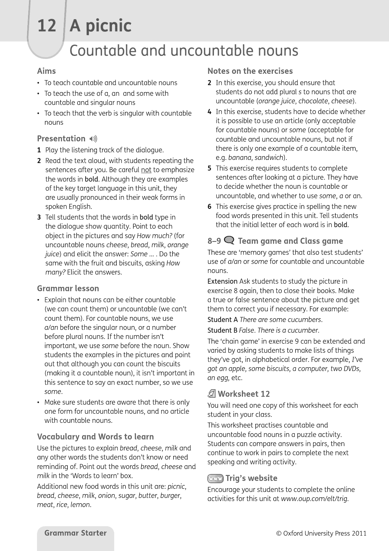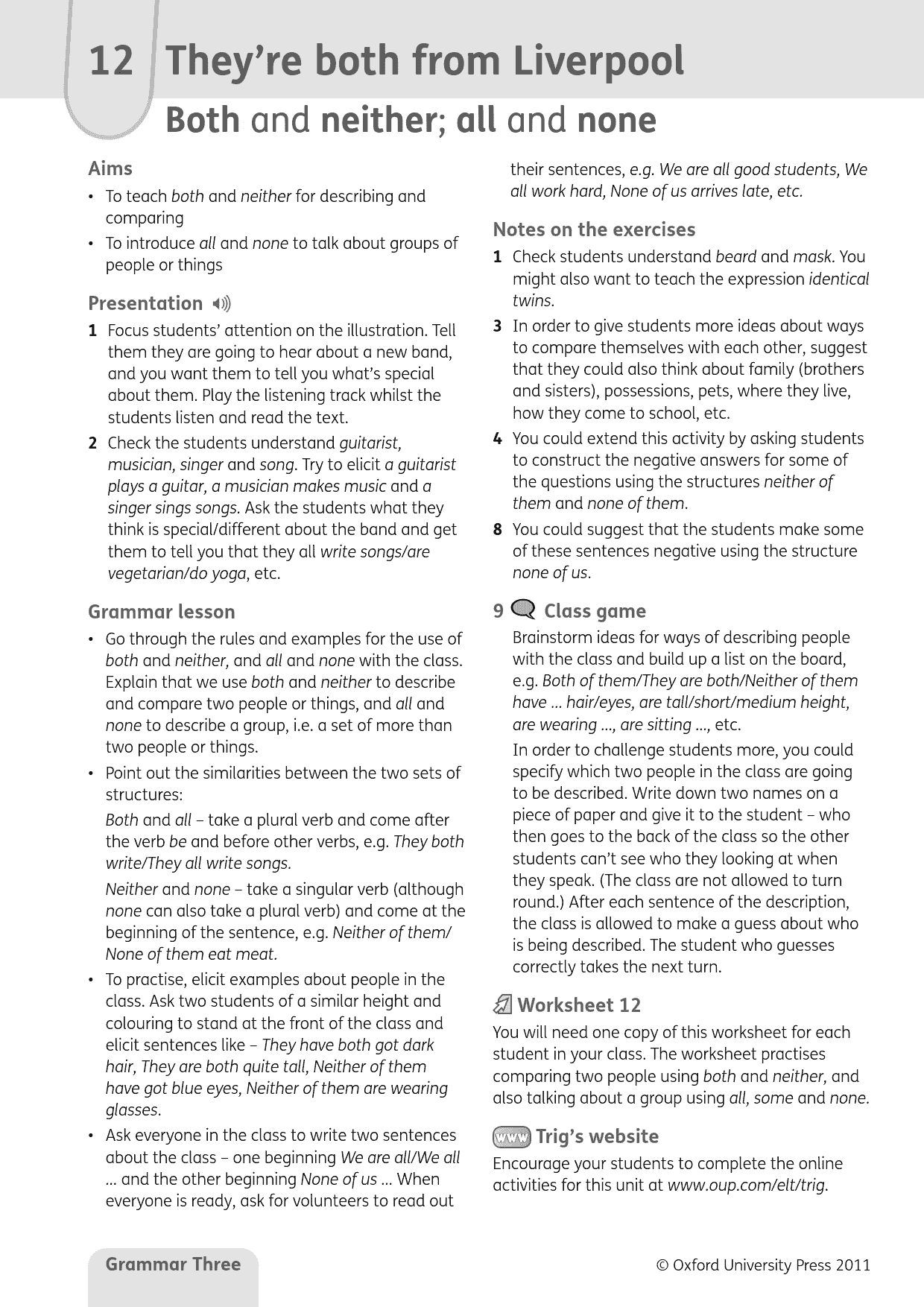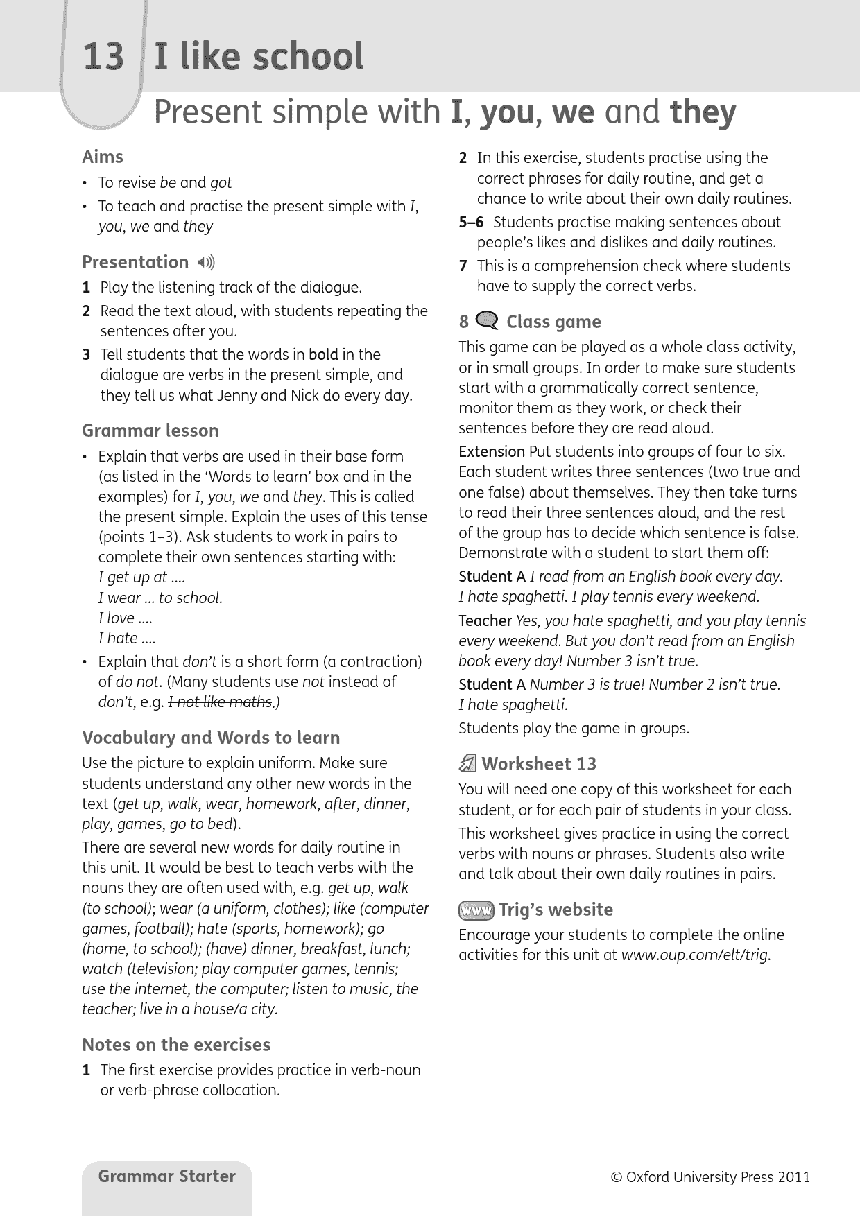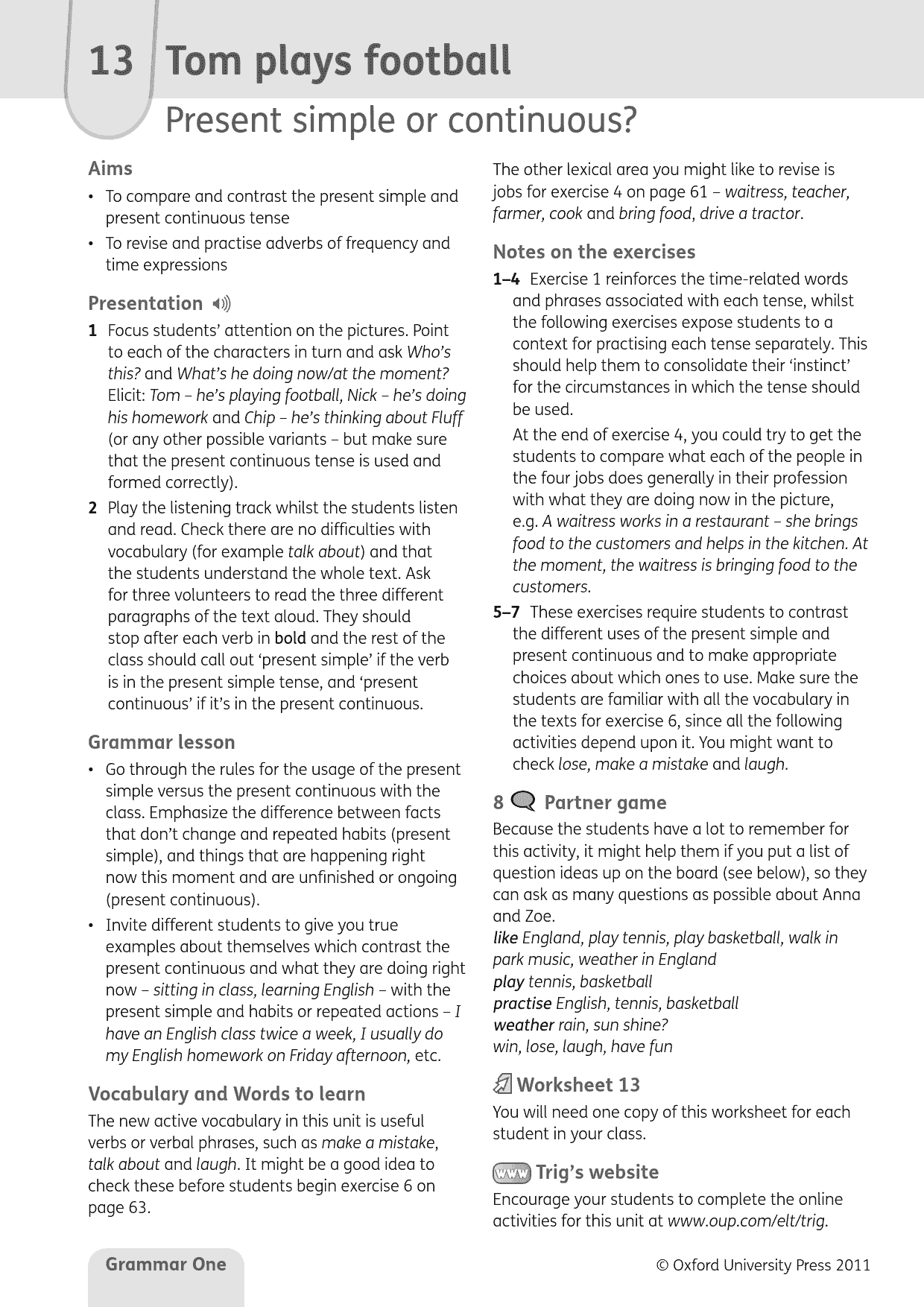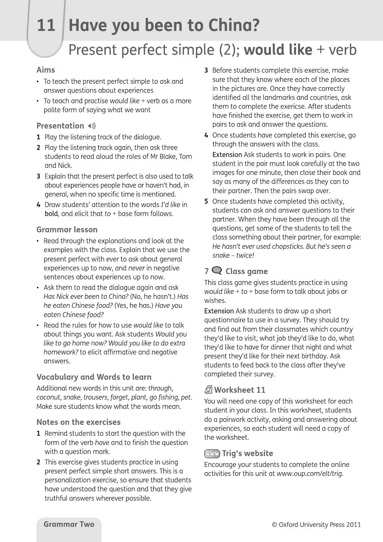 – Extra online materials for students and teachers give extra practice and lesson support.