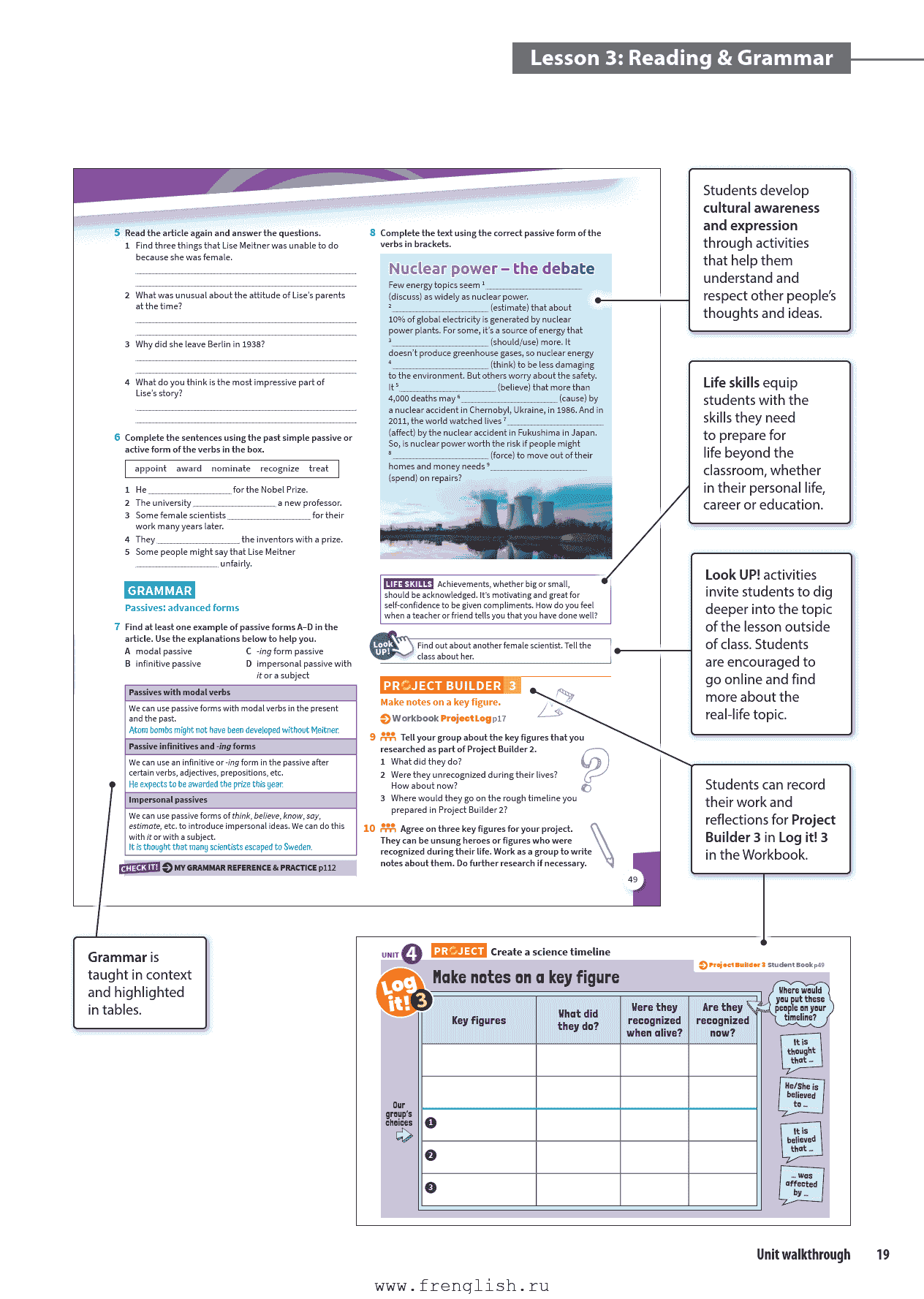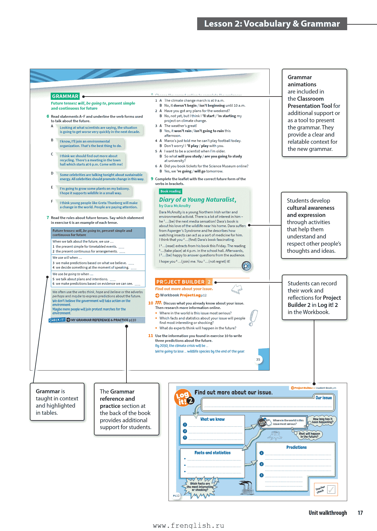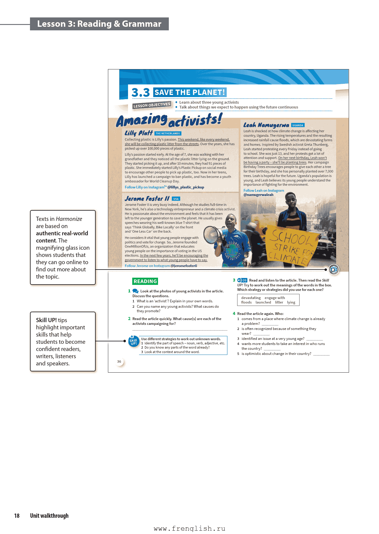 Get Inspired: 通过视频和阅读引入单元主题,激发兴趣。