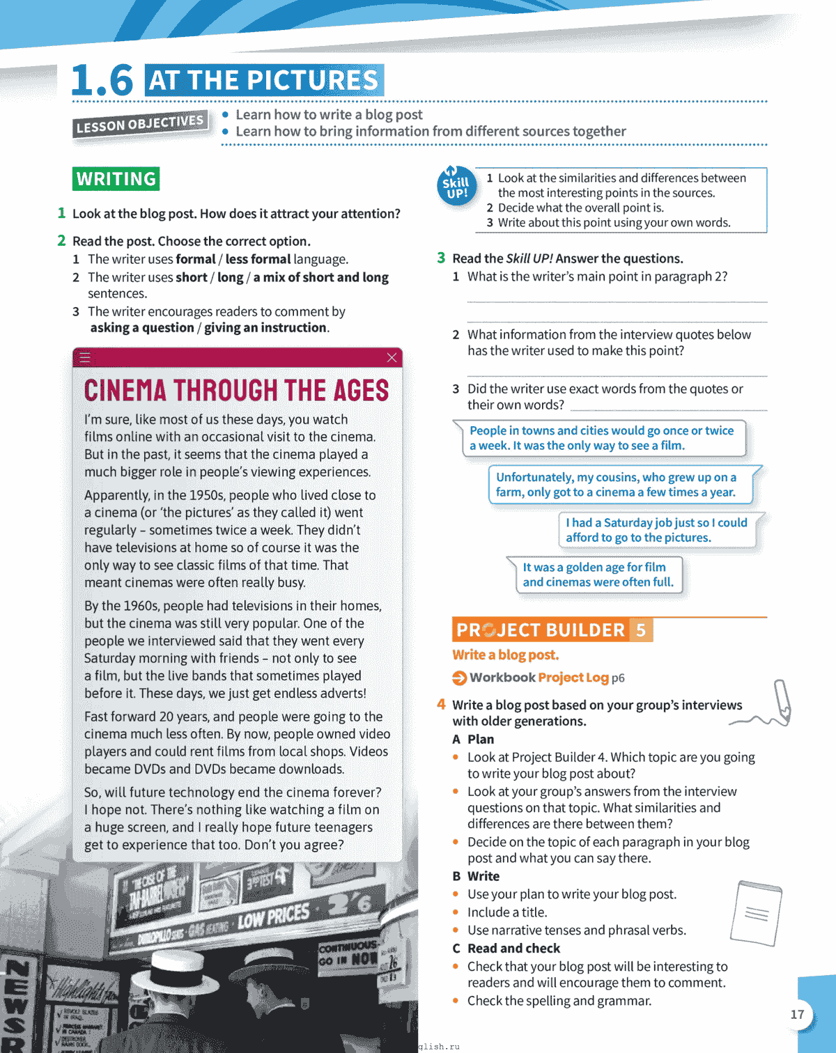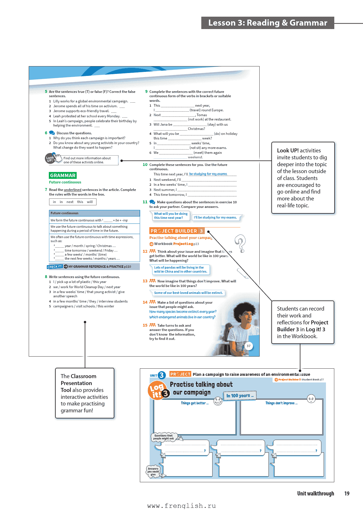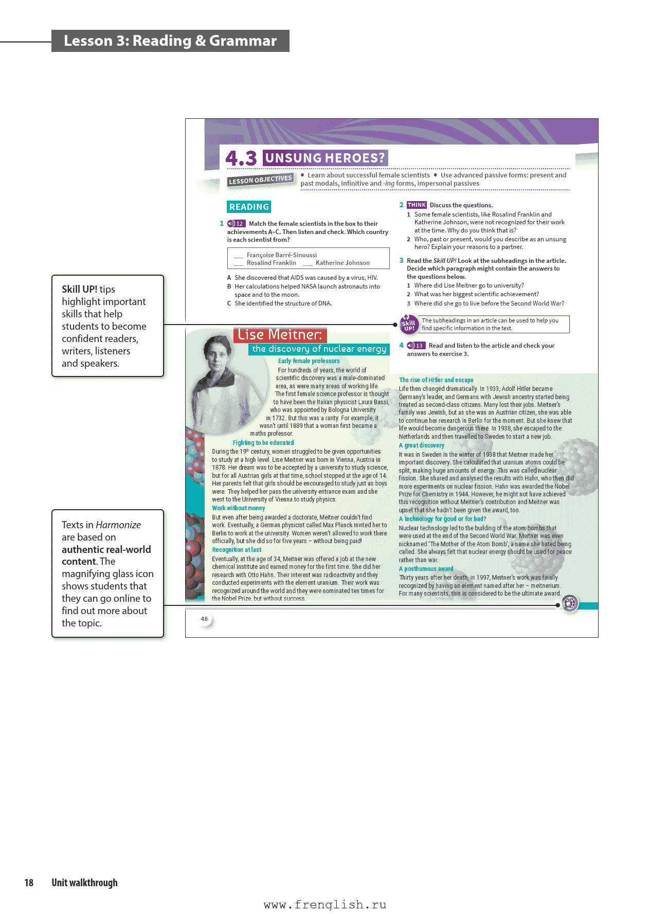 Get Inspired: 通过视频和阅读引入单元主题,激发兴趣。