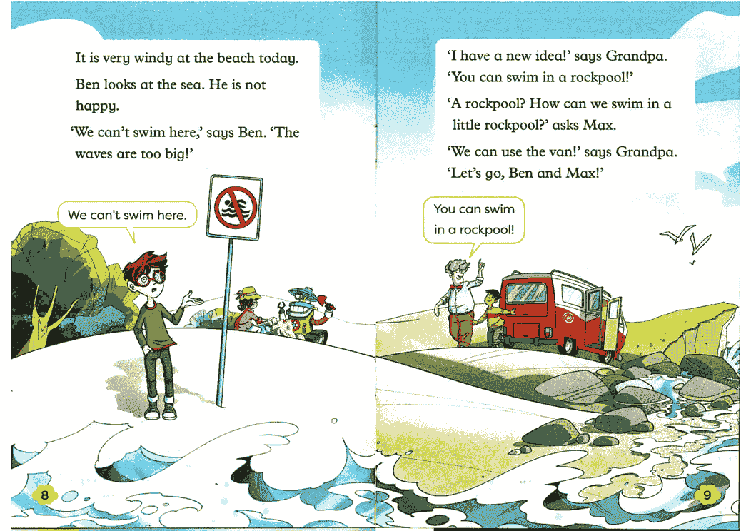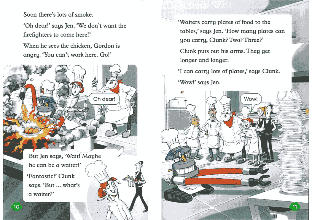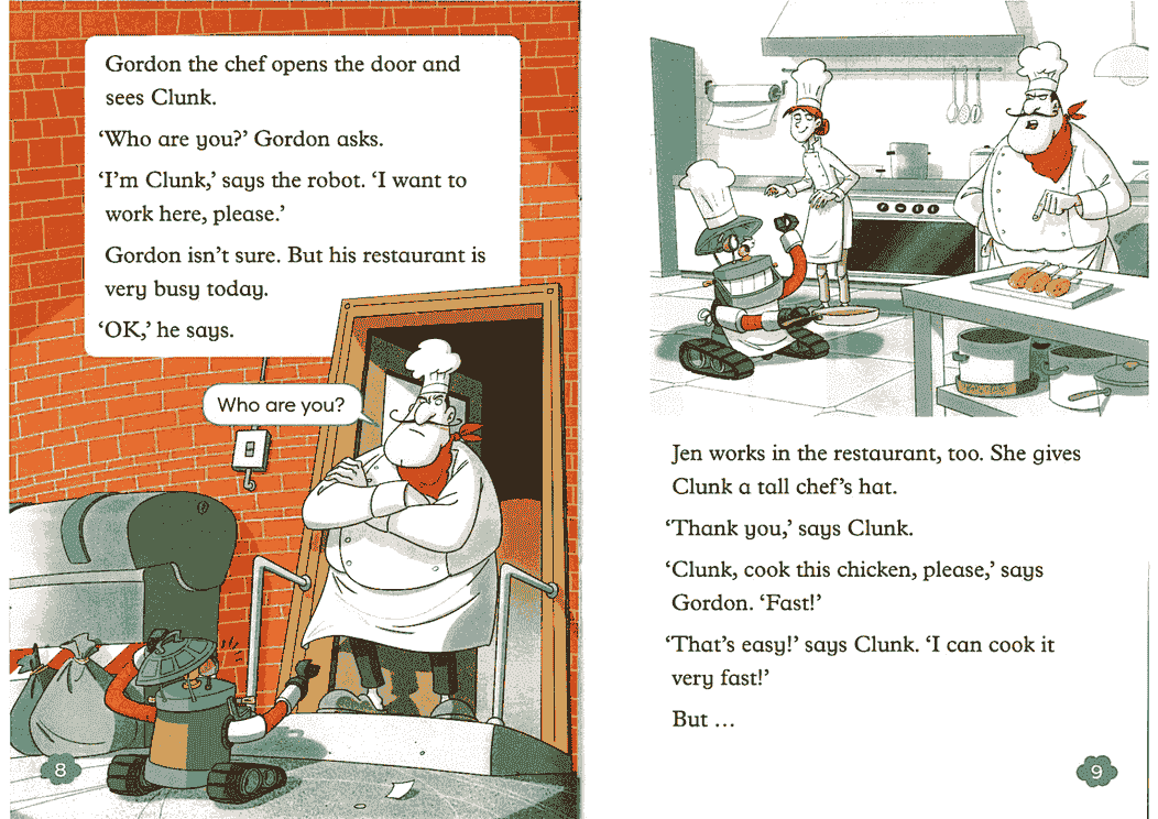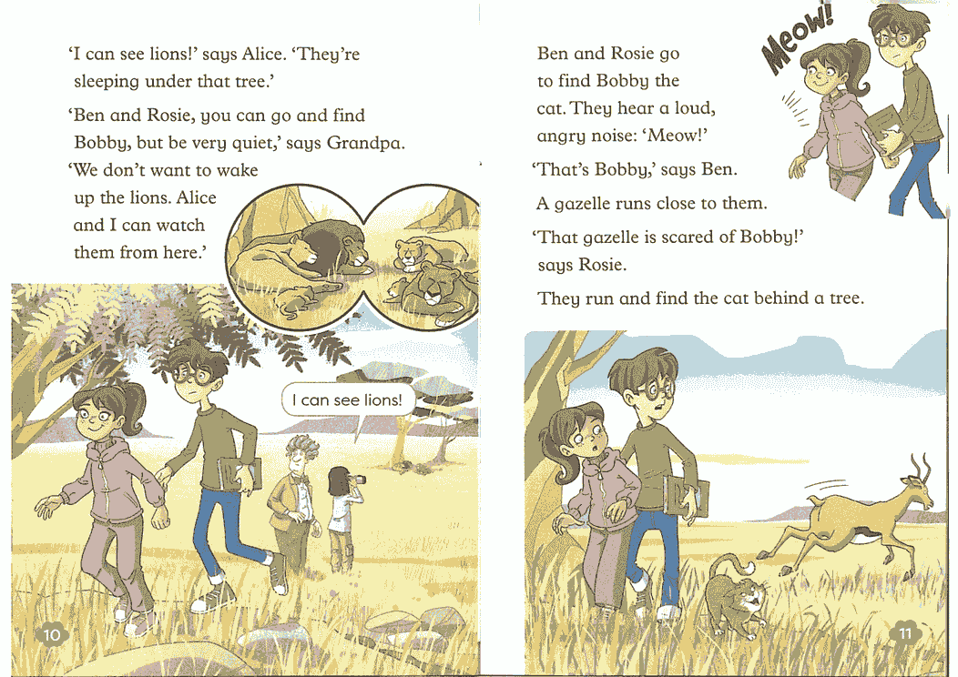 2-3级: 句子逐渐变长,出现简单对话和基础语法结构(如现在进行时、一般现在时)。故事性增强。