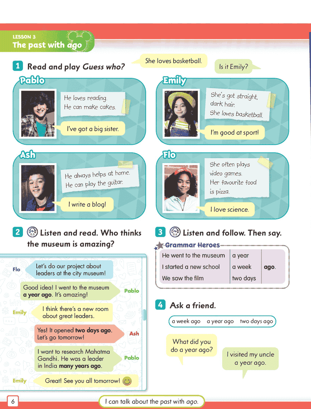 教材不仅关注语言技能(听、说、读、写),还通过联合国可持续发展目标启发的“大问题”来培养孩子的社会责任感和全球公民意识。例如,讨论环境保护、友好相处等话题。